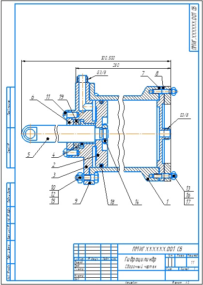 Вариант 1. ПМИГ.ХХХХХХ.001 Гидроцилиндр