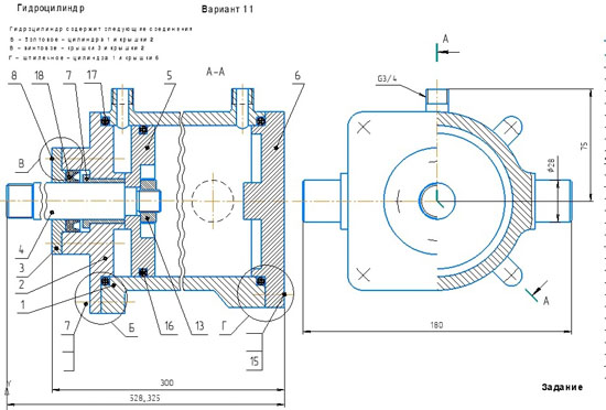 вариант 26 Гидроцилиндр деталировка вариант 26 Гидроцилиндр чертежи вариант 26 Гидроцилиндр сборочный чертеж
