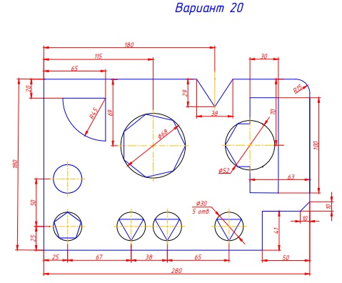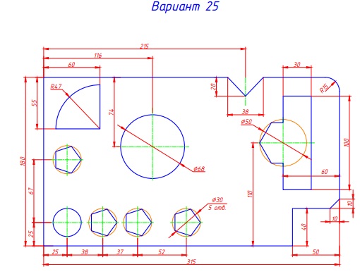 Плоский контур. вариант 23 СКАЧАТЬ ЧЕРТЕЖ