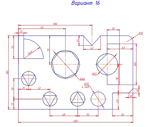 | Плоский контур. вариант 16 ЧЕРТЕЖ Плоский контур КГ01.016.000.000 ЧЕРТЕЖ