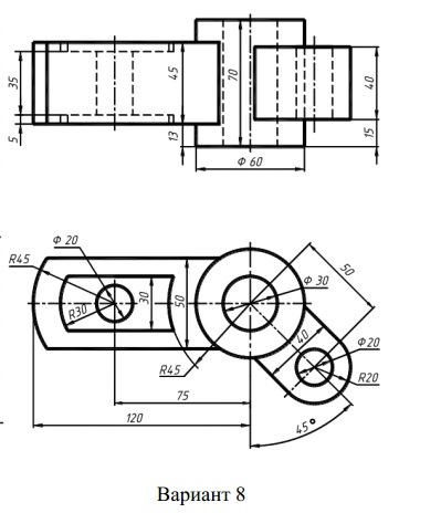 | Ломанный разрез. Вариант 8 ЧЕРТЕЖ