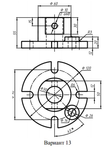 | Ломанный разрез. Вариант 13 ЧЕРТЕЖ