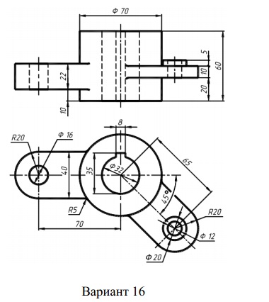 | Ломанный разрез. Вариант 16 ЧЕРТЕЖ