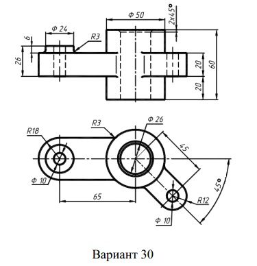 | Ломанный разрез. Вариант 30 ЧЕРТЕЖ
