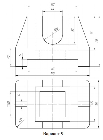 Цель работы: 1) изучить основными правила и приемы выполнения простых разрезов; 2) сформировать навыки проецирования, нанесения размеров и чтения чертежей.