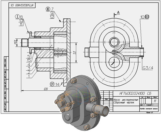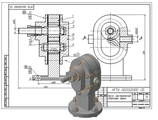 МЕТОДИЧЕСКИЕ УКАЗАНИЯ Чертеж шестеренчатого насоса выполнить в формате А2 в масштабе 1:1 в двух изображениях.