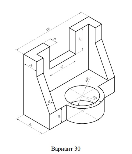 Построение 3-х видов. Вариант 30 СКАЧАТЬ