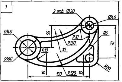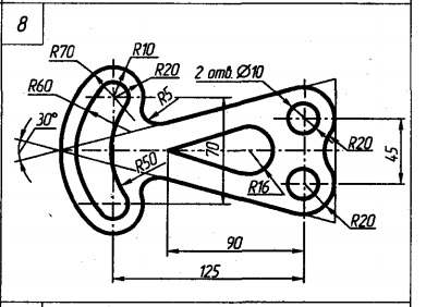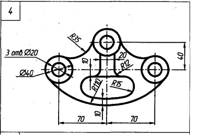 По исходным данным вычертите изображение плоской детали. Деталь расположите на чертеже горизонтально и примените масштаб изображения 1:1.