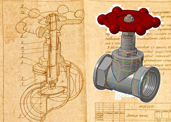 Вентиль устанавливается на трубопроводах корпус 1, крышка 2 и прокладка в сборе неподвижны. Шпиндель 4 имеет резьбу и при открытии смещается вверх, открывая золотник от внутренней перемычки (седло). В нижней части шпинделя есть подвижное, неплотно завальцованное, соединение с золотником 5. В районе выхода шпинделя из крышки заложен уплотняющий пеньковый шнур (спльниковая набивка) 11, поджатый нажимной втулкой 6. Под набивкой установлено кольцо 7. На четырехгранную призматическую часть шпинделя посажен маховик 8, закрепленный стандартными шайбой 10 и гайкой 9.