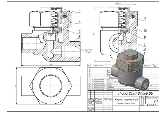 Клапан переливной П-392.05.07.07.000 СКАЧАТЬ