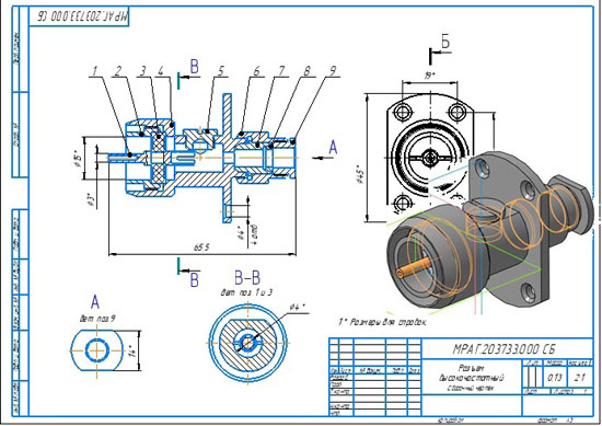 Разъем высокочастотный МРАГ.203733.000 сб Разъем высокочастотный МРАГ.203733.000 спецификация Разъем высокочастотный МРАГ.203733.000 3d сборка Разъем высокочастотный МРАГ.203733.000 чертежи Штырь МРАГ.203733.001 Держатель МРАГ.203733.002 Полушайба МРАГ.203733.003 Корпус МРАГ.203733.004 Пробка МРАГ.203733.005 Головка МРАГ.203733.006 Ниппель МРАГ.203733.007 Уплотнитель МРАГ.203733.008 Прижим МРАГ.203733.009