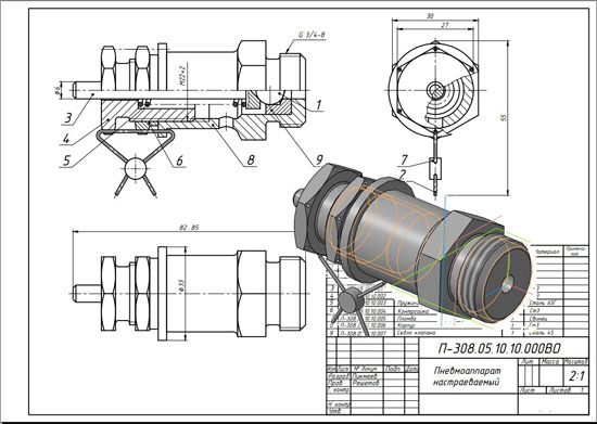 Пневмоаппарат настраиваемый П-308.05.10.10.000 сб Пневмоаппарат настраиваемый П-308.05.10.10.000 срецификация Пневмоаппарат настраиваемый П-308.05.10.10.000 3д модель Пневмоаппарат настраиваемый П-308.05.10.10.000 чертежи Шток П-308.05.10.10.001 Гайка нажимная П-308.05.10.10.002 Пружина П-308.05.10.10.003 Контрогайка П-308.05.10.10.004 Пломба П-308.05.10.10.005 Корпус П-308.05.10.10.006 Седло клапана П-308.05.10.10.007