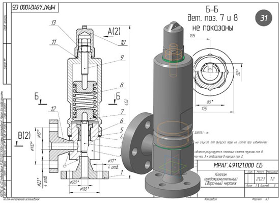 Клапан предохранительный МРАГ.491121.000 сб на 2 листах Клапан предохранительный МРАГ.491121.000 спецификация Клапан предохранительный МРАГ.491121.000 3d сборка Клапан предохранительный МРАГ.491121.000 чертежи Фланец МРАГ.491121.001 Корпус МРАГ.491121.002 Клапан МРАГ.491121.003 Втулка направляющая МРАГ.491121.004 Прокладка МРАГ.491121.005 Крышка МРАГ.491121.006 Тарелка пружины МРАГ.491121.007 Пружина МРАГ.491121.008 Болт регулировочный МРАГ.491121.009 Колпак МРАГ.491121.010 Прокладка МРАГ.491121.011 Фланец МРАГ.491121.012