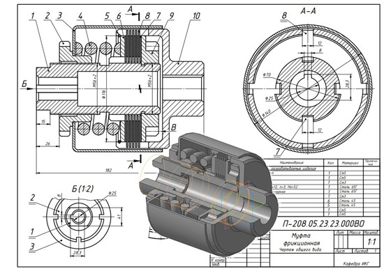 Муфта фрикционная П-208.05.23.23.000 сб Муфта фрикционная П-208.05.23.23.000 спецификация Муфта фрикционная П-208.05.23.23.000 3д модель Муфта фрикционная П-208.05.23.23.000 чертежи Полумуфта П-208.05.23.23.001 Гайка П-208.05.23.23.002 Кожух П-208.05.23.23.003 Пружина П-208.05.23.23.004 Кольцо стопорное П-208.05.23.23.005 Шайба П-208.05.23.23.006 Диск ведомый П-208.05.23.23.007 Диск ведущий П-208.05.23.23.008 Гайка упорная П-208.05.23.23.009 Полумуфта П-208.05.23.23.010