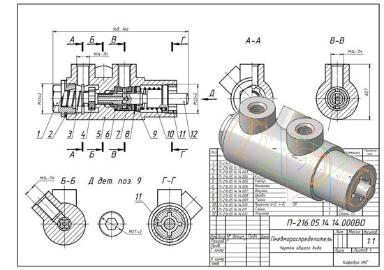 | Пневмораспределитель П-216.05.14.14.000 ЧЕРТЕЖ