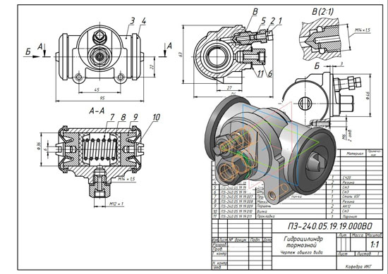 Гидроцилиндр тормозной ПЗ-240.05.19.19.000 сб Гидроцилиндр тормозной ПЗ-240.05.19.19.000 спецификация Гидроцилиндр тормозной ПЗ-240.05.19.19.000 3d сборка Гидроцилиндр тормозной ПЗ-240.05.19.19.000 чертежи Корпус З-240.05.19.19.003 Колпак защитный З-240.05.19.19.004 Штуцер (клапан) З-240.05.19.19.005 Штуцер З-240.05.19.19.006 Пружина З-240.05.19.19.007 Манжета З-240.05.19.19.008 Поршень З-240.05.19.19.009 Вилка З-240.05.19.19.010 Прокладка З-240.05.19.19.011