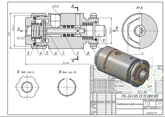 Пневмораспределитель ПЗ-241.05.13.13.000 сб Пневмораспределитель ПЗ-241.05.13.13.000 спецификация Пневмораспределитель ПЗ-241.05.13.13.000 3d сборка Пневмораспределитель ПЗ-241.05.13.13.000 чертежи Крышка ПЗ-241.05.13.13.004 Пружина ПЗ-241.05.13.13.005 Клапан ПЗ-241.05.13.13.006 Прокладка клапана ПЗ-241.05.13.13.007 Корпус ПЗ-241.05.13.13.008 Золотник ПЗ-241.05.13.13.009 Кольцо замковое ПЗ-241.05.13.13.010