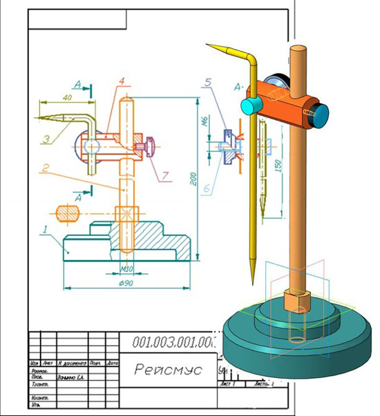 Рейсмус 001.003.001.00 сб Рейсмус 001.003.001.00 спецификация Рейсмус 001.003.001.00 3d сборка Рейсмус 001.003.001.00 чертежи Основание 001.003.001.01 Стержень 001.003.001.02 Чертилка 001.003.001.03 Каретка 001.003.001.04 Гайка 001.003.001.05 Винт зажимной 001.003.001.06 Винт М2,5х8 001.003.001.07