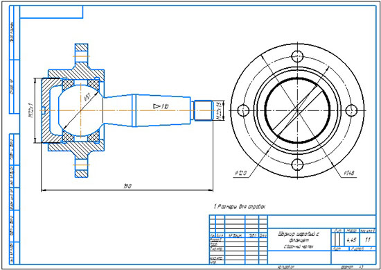 | Шарнир шаровой с фланцем. вариант 6 ЧЕРТЕЖ