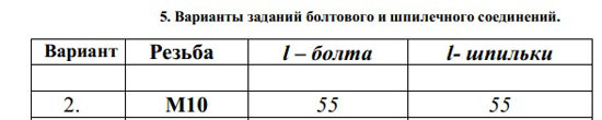 Для закрепления знаний, полученных при изучении темы «Резьбовые соединения», курсантам (студентам) необходимо выполнить графическую работу №4. Пример выполнения задания приведен на рис. 14.Варианты – даны в таблице №2.