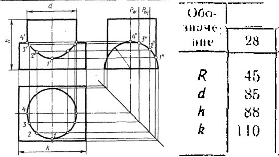| Пересечения поверхностей цилиндров. вариант 28 ЧЕРТЕЖ