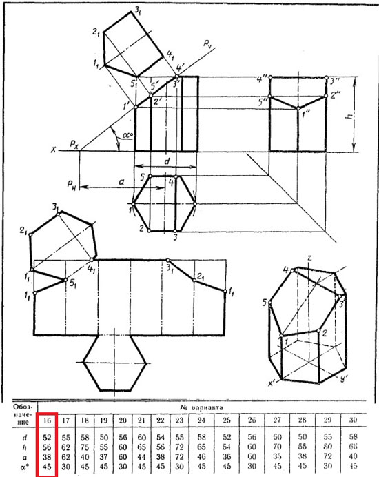 | Усеченная призма. Вариант 16 ЧЕРТЕЖ