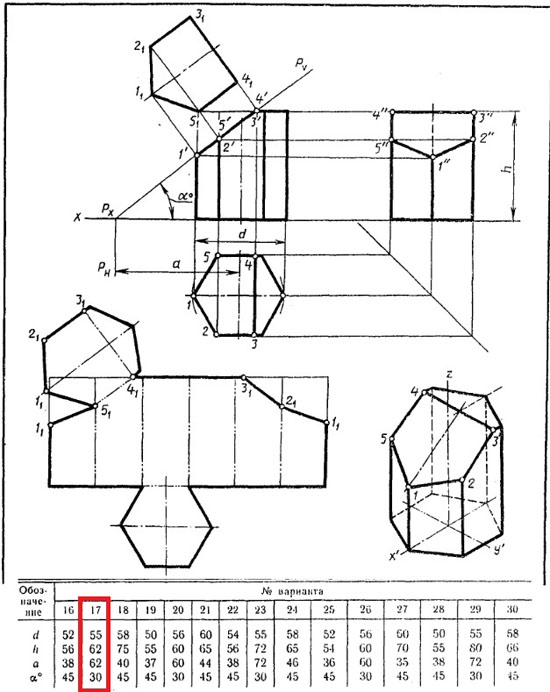 | Усеченная призма. Вариант 17 ЧЕРТЕЖ
