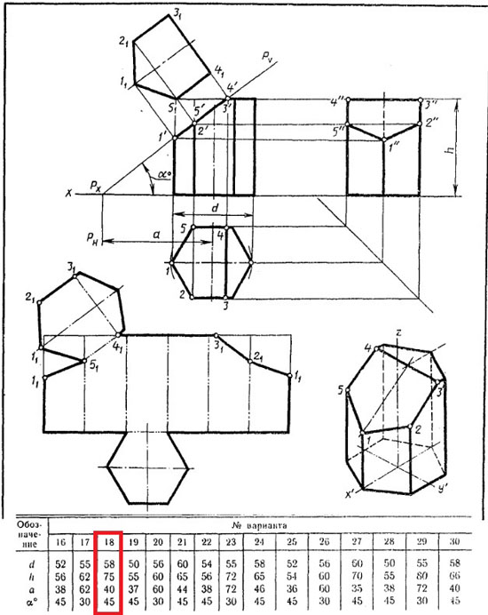 | Усеченная призма. Вариант 18 ЧЕРТЕЖ