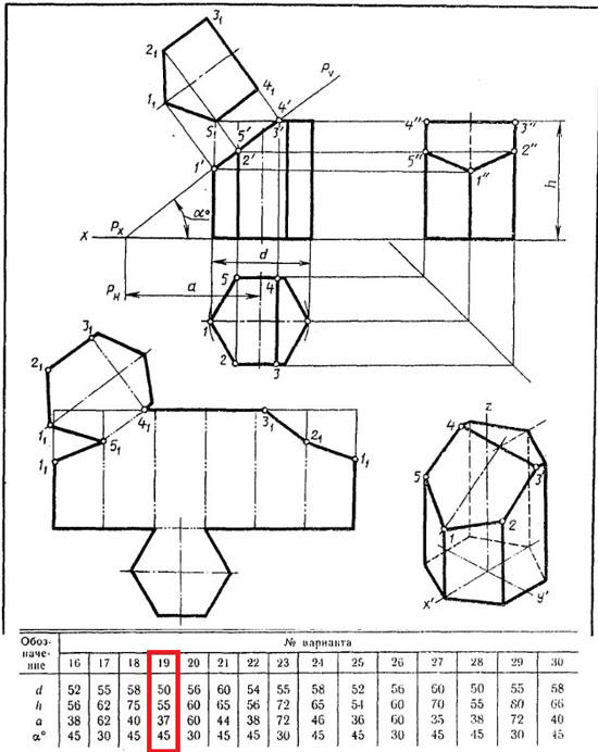 | Усеченная призма. Вариант 19 ЧЕРТЕЖ