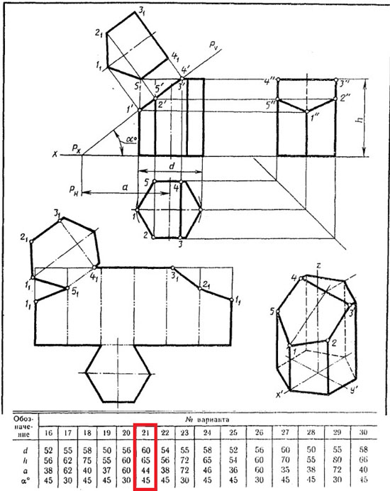 | Усеченная призма. Вариант 21 ЧЕРТЕЖ