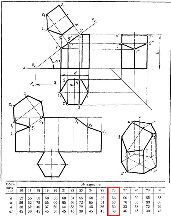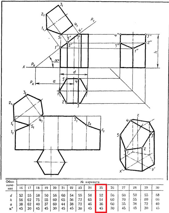 | Усеченная призма. Вариант 25 ЧЕРТЕЖ