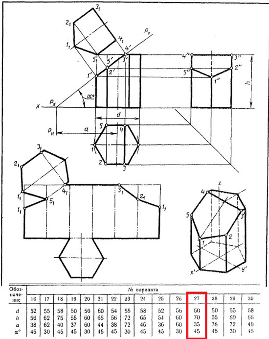 | Усеченная призма. Вариант 27 ЧЕРТЕЖ