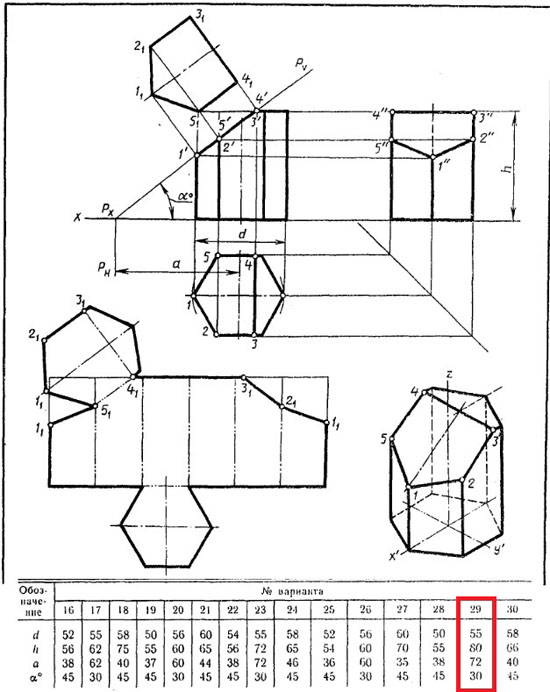 | Усеченная призма. Вариант 29 ЧЕРТЕЖ