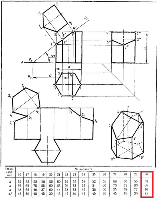 | Усеченная призма. Вариант 30 ЧЕРТЕЖ