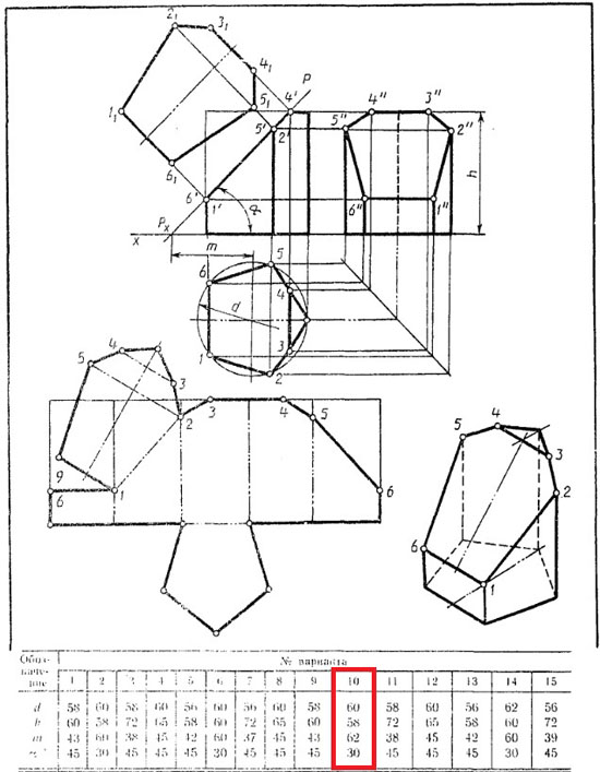 | Вариант 10 Усеченная призма ЧЕРТЕЖ
