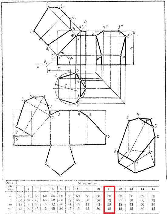 | Вариант 11 Усеченная призма ЧЕРТЕЖ