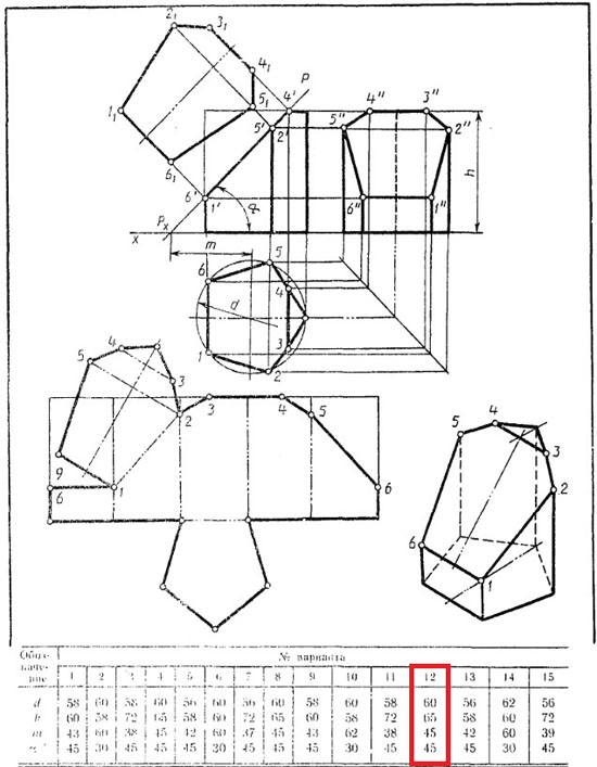 | Вариант 12 Усеченная призма ЧЕРТЕЖ