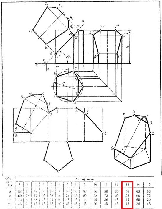 | Вариант 13 Усеченная призма ЧЕРТЕЖ