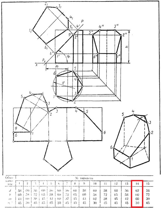 | Вариант 14 Усеченная призма ЧЕРТЕЖ