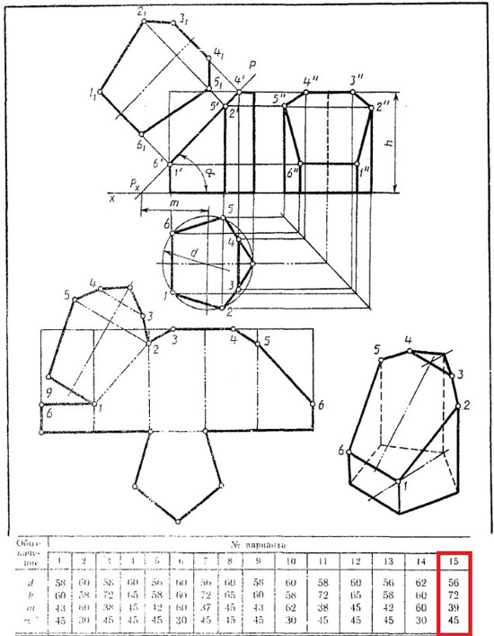 | Вариант 15 Усеченная призма ЧЕРТЕЖ