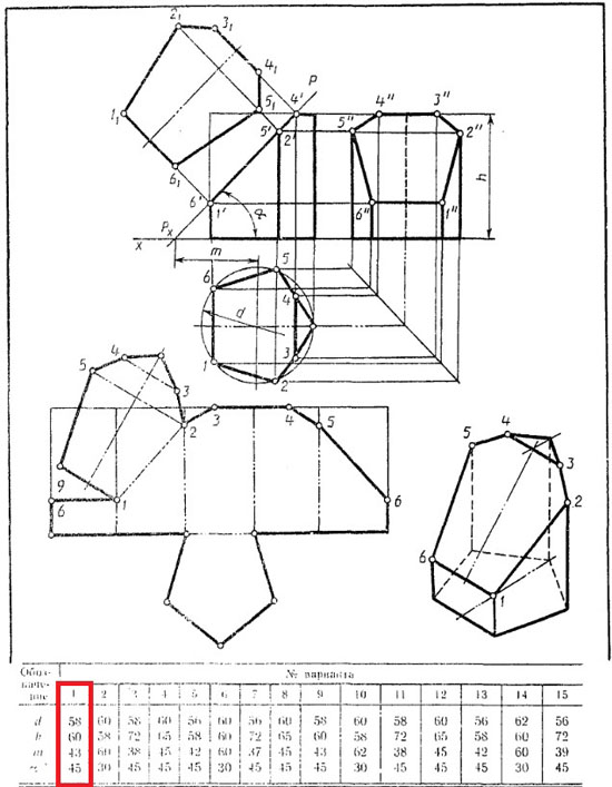 | Вариант 1 Усеченная призма ЧЕРТЕЖ