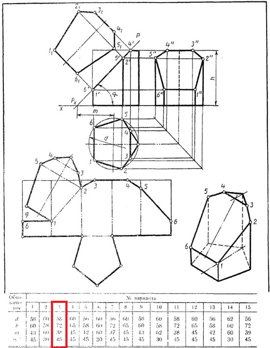 | Вариант 3 Усеченная призма ЧЕРТЕЖ