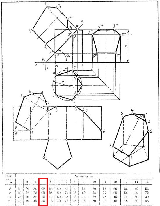 | Вариант 4 Усеченная призма ЧЕРТЕЖ