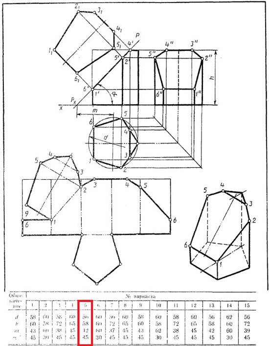 | Вариант 5 Усеченная призма ЧЕРТЕЖ
