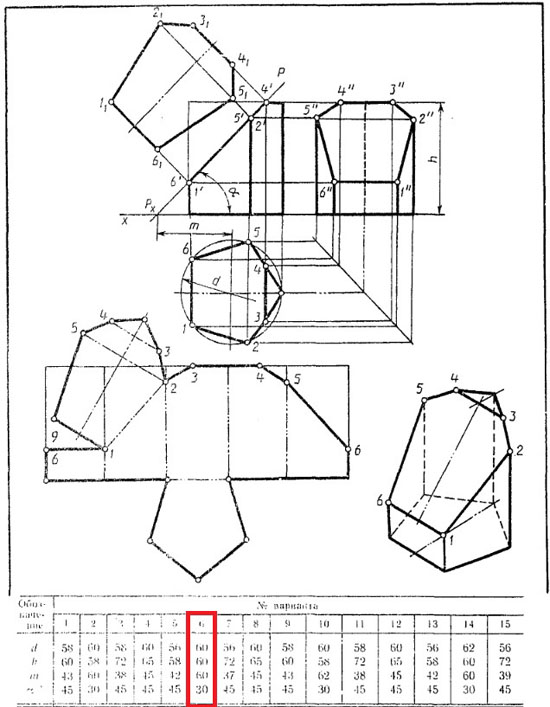 | Вариант 6 Усеченная призма ЧЕРТЕЖ