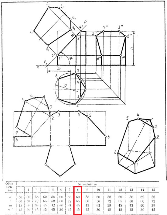 | Вариант 8 Усеченная призма ЧЕРТЕЖ
