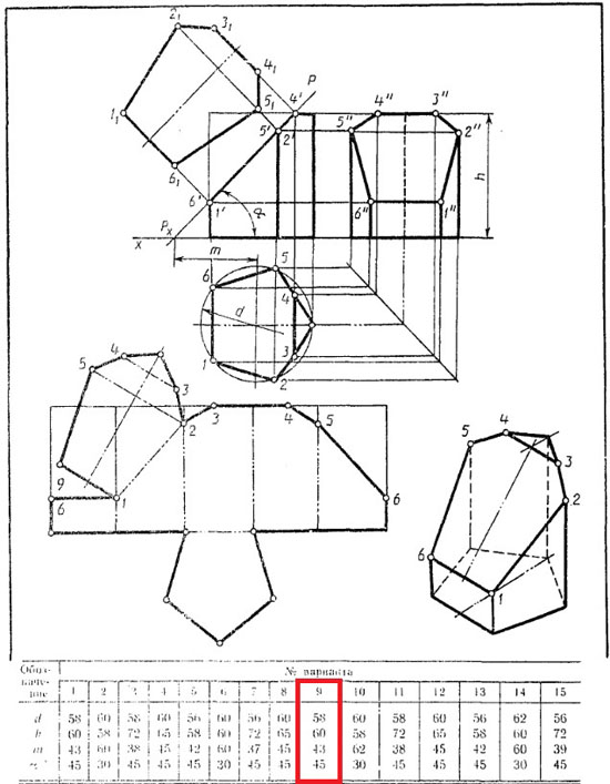 | Вариант 9 Усеченная призма ЧЕРТЕЖ