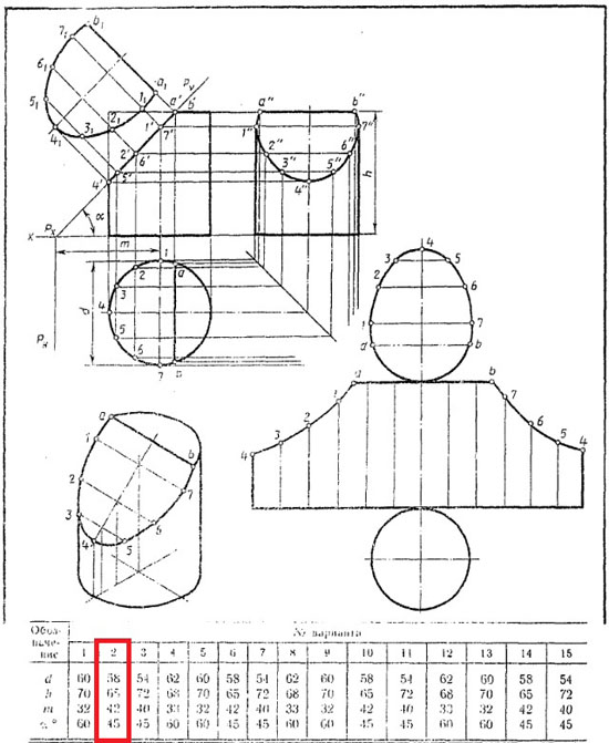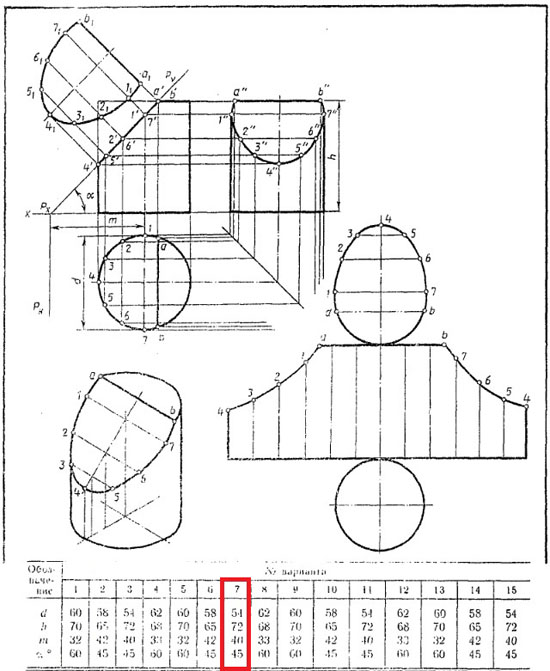 | Усеченный цилиндр. Вариант 7 ЧЕРТЕЖ