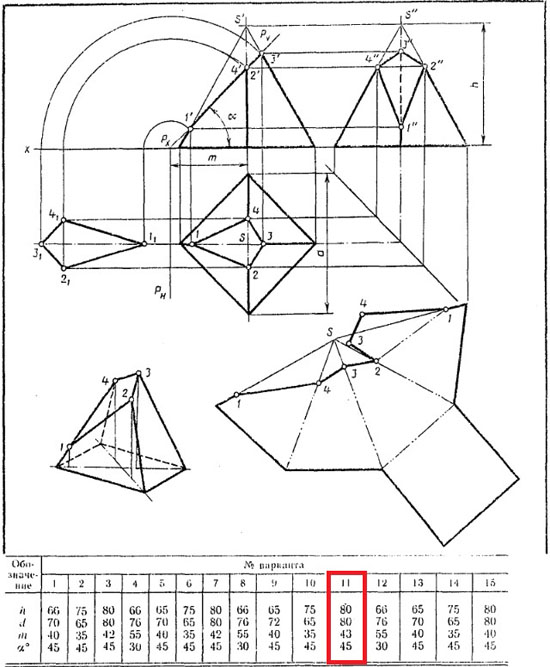 | Усеченная пирамида. Вариант 11 ЧЕРТЕЖ
