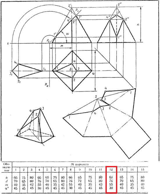 | Усеченная пирамида. Вариант 12 ЧЕРТЕЖ